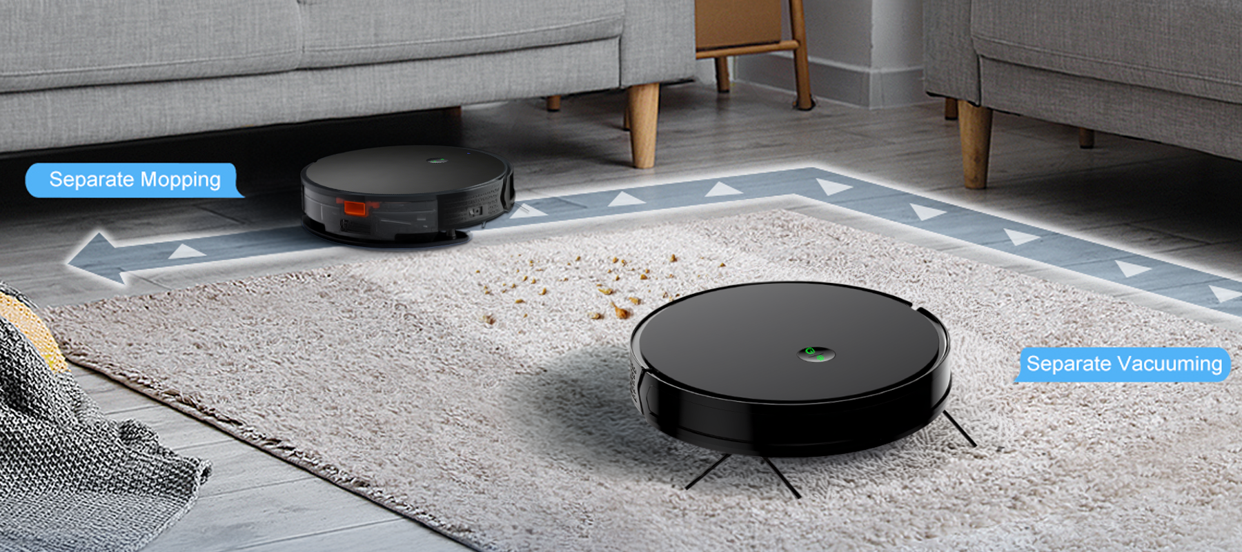 Tired of lingering dirt? 3000Pa Hurricane Suction thoroughly cleans dust, hair, and debris hidden deep in crevices and carpets. Say goodbye to repeated cleaning and hello to true cleanliness in just one go!