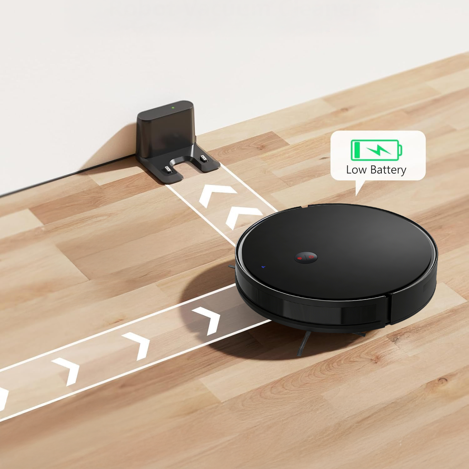 Robotus effortlessly handles its own power. When the battery runs low, it automatically returns to its charging dock, recharges itself, and gets ready for the next cleaning cycle. Enjoy continuous cleanliness without lifting a finger.